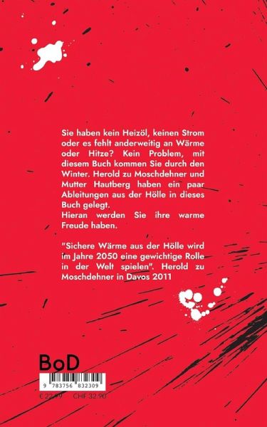 Sie haben kein Heizöl, keinen Strom oder es fehlt anderweitig an Wärme oder Hitze? Kein Problem, mit diesem Buch kommen Sie durch den Winter. Herold zu Moschdehner und Mutter Hautberg haben ein paar Ableitungen aus der Hölle in dieses Buch gelegt. Hieran werden Sie ihre warme Freude haben. "Sichere Wärme aus der Hölle wird im Jahre 2050 eine gewichtige Rolle in der Welt spielen". Herold zu Moschdehner in Davos 2011