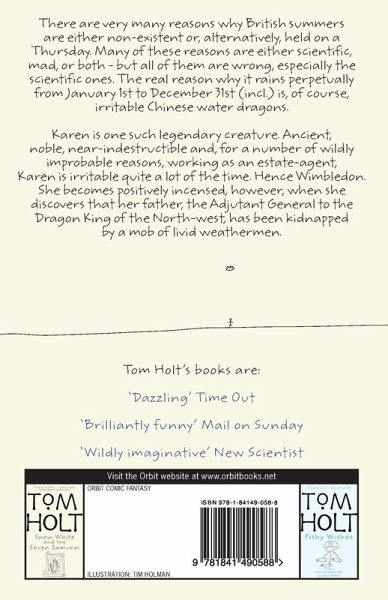 The real reason why it rains perpetually from January 1st to December 31st (incl.) is, of course, irritable Chinese Water Dragons. Karen is one such legendary creature. Ancient, noble, near-indestructible and, for a number of wildly improbable reasons, working as an estate-agent, Karen is irritable quite a lot of the time. Hence Wimbledon.