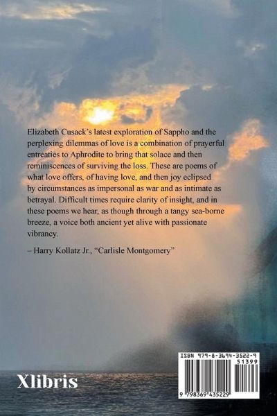 Elizabeth Cusack's latest exploration of Sappho and the perplexing dilemmas of love is a combination of prayerful entreaties to Aphrodite to bring that solace and then reminiscences of surviving the loss. These are poems of what love offers, of having love, and then joy eclipsed by circumstances as impersonal as war and as intimate as betrayal. Difficult times require clarity of insight, and in these poems we hear, as though through a tangy sea-borne breeze, a voice both ancient yet alive with passionate vibrancy. - Harry Kollatz Jr., "Carlisle Montgomery"