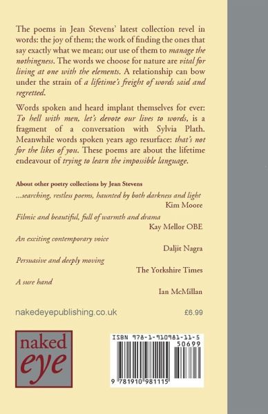 The poems in Jean Stevens' latest collection revel in words: the joy of them; the work of finding the ones that say exactly what we mean; our use of them to 'manage the nothingness'.