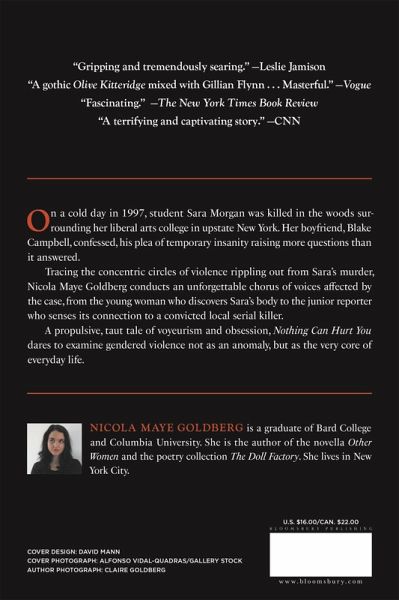 A "captivating, serpentine, and affecting" (Megan Abbott) literary thriller inspired by the true story of a college student's killing. BEST BOOKS OF SUMMER 2020 - PEOPLE MAGAZINE, VOGUE, CNN, REFINERY29, CRIMEREADS, and more "Fascinating." -Sarah Lyall, New York Times Book Review "Gone Girl for the new decade." -Vogue.com On a cold day in 1997, student Sara Morgan was killed in the woods surrounding her liberal arts college in upstate New York. Her boyfriend, Blake Campbell, confessed, his plea of temporary insanity raising more questions than it answered. In the wake of his acquittal, the case comes to haunt a strange and surprising network of community members, from the young woman who discovers Sara's body to the junior reporter who senses its connection to convicted local serial killer John Logan. Others are looking for retribution or explanation: Sara's half sister, stifled by her family's bereft silence about Blake, poses as a babysitter and seeks out her own form of justice, while the teenager Sara used to babysit starts writing to Logan in prison. A propulsive, taut tale of voyeurism and obsession, Nothing Can Hurt You dares to examine gendered violence not as an anomaly, but as the very core of everyday life. Tracing the concentric circles of violence rippling out from Sara's murder, Nicola Maye Goldberg masterfully conducts an unforgettable chorus of disparate voices.