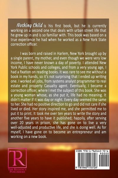 Nothing Child is his first book, but he is currently working on a second one that deals with urban street life that he grew up in and is so familiar with. This book was based on a true experience he had when he worked as a New York State correction officer.