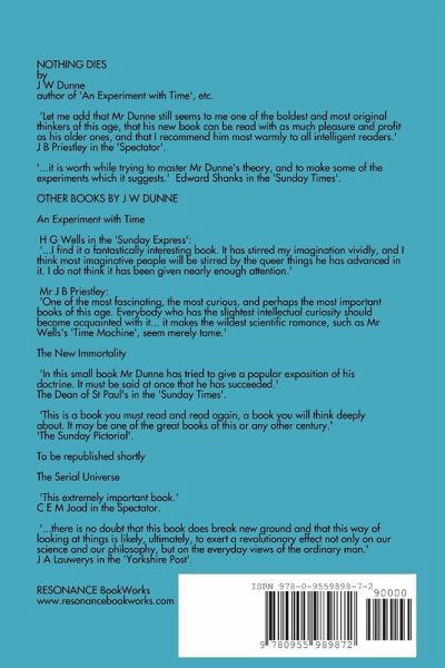 A new edition of J W Dunne's famous and brilliant time theory work. A short, no fuss account of the theory without mathematics. Also in the series; An Experiment with Time; The Serial Universe; The New Immortality