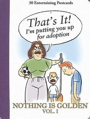 We live in a savage society of imperfect endings veiled by a thin veneer of civility. "Nothing Is Golden"TM is the brand name for a line of irreverent postcard books and merchandise for adults that parody, among other things, famous childrens book brands. Inspired by real life slices of life, the front of each postcard in the books sports an imaginary childrens book illustration and title with an accompanying editorial comment on the backside, such as the illustrated cover title, Punch the Bunny with the editorial comment, A Touch and Feel Book for the real world. But you will never need to hide this book from your grandmother. In fact, anecdotal evidence suggests that grandmothers are just as receptive to the content as any other demographic, including moms a good deal younger, realists, such as plumbers, and mature intellectual types, disillusioned by their "real" world experiences.