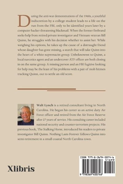 During the anti-war demonstrations of the 1960s, a youthful indiscretion by a college student leads to a life on the run from the FBI, only to be identified years later by a computer hacker threatening blackmail. When the former firebrand seeks help from retired private investigator and Vietnam veteran Bill Quinn, he struggles with his decision whether to assist her. While weighing his options, he takes up the cause of a distraught friend whose daughter has gone missing, a search that will take Quinn into the heart of a white supremacist group. Unbeknownst to Quinn, a local narcotics agent and…mehr