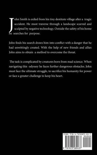 John Smith is exiled from his tiny destitute village after a tragic accident. He must traverse through a landscape scarred and sculpted by negative technology. Outside the safety of his home he searches for purpose. John finds his search draws him into conflict with a danger that he had unwittingly created. With the help of new friends and allies John aims to obtain a method to overcome the threat. The task is complicated by creatures born from mad science. When navigating this odyssey he faces further dangerous obstacles. John must face the ultimate struggle, to sacrifice his humanity for power or face a greater challenge to keep his heart.