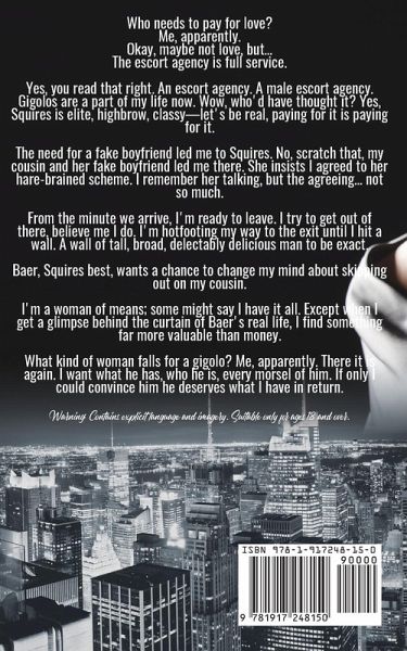 Fake Relationship (Billionairess & Male Escort) Who needs to pay for love? Me, apparently. Okay, maybe not love, but... The escort agency is full service. Yes, you read that right. An escort agency. A male escort agency. Gigolos are a part of my life now. Wow, who'd have thought it? Yes, Squires is elite, highbrow, classy-let's be real, paying for it is paying for it. The need for a fake boyfriend led me to Squires. No, scratch that, my cousin and her fake boyfriend led me there. She insists I agreed to her hare-brained scheme. I remember her talking, but the agreeing... not so much. From the minute we arrive, I'm ready to leave. I try to get out of there, believe me I do. I'm hotfooting my way to the exit until I hit a wall. A wall of tall, broad, delectably delicious man to be exact. Baer, Squires best, wants a chance to change my mind about skipping out on my cousin. I'm a woman of means; some might say I have it all. Except when I get a glimpse behind the curtain of Baer's real life, I find something far more valuable than money. What kind of woman falls for a gigolo? Me, apparently. There it is again. I want what he has, who he is, every morsel of him. If only I could convince him he deserves what I have in return. Warning: Contains explicit language and imagery. Suitable only for ages 18 and over. **HEA STANDALONE**