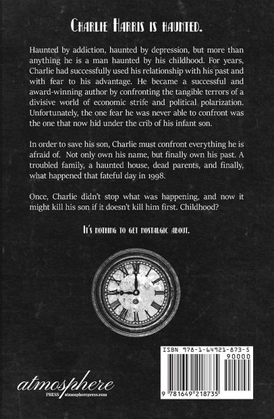 Charlie Harris is haunted. Haunted by addiction, haunted by depression, but more than anything he is a man haunted by his childhood. For years, Charlie had successfully used his relationship with his past and with fear to his advantage. He became a successful and award-winning author by confronting the tangible terrors of a divisive world of economic strife and political polarization. Unfortunately, the one fear he was never able to confront was the one that now hid under the crib of his infant son. In order to save his son, Charlie must confront everything he is afraid of. Not only own his name, but finally own his past. A troubled family, a haunted house, dead parents, and finally, what happened that fateful day in 1997. Once, Charlie didn't stop what was happening, and now it might kill his son if it doesn't kill him first. Childhood? It's nothing to get nostalgic about.