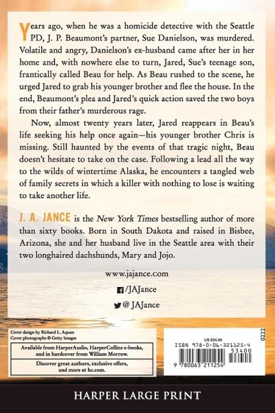 The newest thrilling Beaumont suspense novel from New York Times bestselling author J. A. Jance, in which Beaumont is approached by a visitor from the past and finds himself drawn into a missing person's case where danger is lurking and family secrets are exposed. Years ago, when he was a homicide detective with the Seattle PD, J. P. Beaumont's partner, Sue Danielson, was murdered. Volatile and angry, Danielson's ex-husband came after her in her home and, with nowhere else to turn, Jared, Sue's teenage son, frantically called Beau for help. As Beau rushed to the scene, he urged Jared to grab his younger brother and flee the house. In the end, Beaumont's plea and Jared's quick action saved the two boys from their father's murderous rage. Now, almost twenty years later, Jared reappears in Beau's life seeking his help once again?his younger brother Chris is missing. Still haunted by the events of that tragic night, Beau doesn't hesitate to take on the case. Following a lead all the way to the wilds of wintertime Alaska, he encounters a tangled web of family secrets in which a killer with nothing to lose is waiting to take another life.