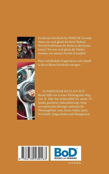 Ein kleines Notizbuch für PORSCHE-Freunde.Wann war noch gleich das letzte Tanken?Wieviel Profil hatten die Reifen in der letzten Saison? Wie war noch gleich die Telefonnummer von meinen Porsche-Freunden?Diese und ähnliche Fragen lassen sich schnell in dieses kleine Notizbuch eintragen...
