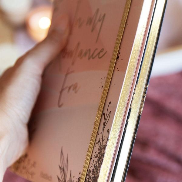 Mit seinem flexiblen Einband, den abgerundeten Ecken und einem Lesebändchen wird das Blankbook im DIN A5-Format nicht nur zu einem hochwertigen, sondern auch praktischen Begleiter durch den Alltag. Ein Gummibandverschluss um den Einband sowie eine große Einstecktasche im Innenteil sorgen dafür, dass Zettel, Sticker, Fotos oder Karten sicher aufbewahrt werden können. Das wunderschöne Cover fügt sich zudem nahtlos in die Ästhetik der liebsten Romance-Bücher ein und ist somit auch eine tolle Ergänzung im Bücherregal. Dank des dezenten Punkterasters auf den 96 Innenseiten kann das Notizbuch vielfältig verwendet werden: als Blankobuch für Skizzen und Handlettering, als Bullet Journal für Termine und kreative Ideen, als Tagebuch oder Book Journal - ideal für Fans von Romance oder Romantasy!