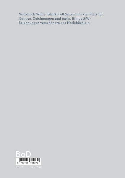 Notizbuch Wölfe. Blanko, 60 Seiten, mit viel Platz für Notizen, Zeichnungen und mehr. Einige S/W-Zeichnungen verschönern das Notizbüchlein.
