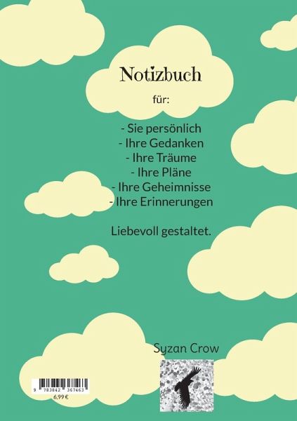 Lebensmittelpunkt von Syzan Crow ist das Sauerland. Mit Liebe zur Natur, einem Ehemann und einer Hundedame. Weitere Bücher: - Affäre, erotische Träume - Affäre, eine erotische Gelegenheit. - Arbeiten im Discounter. Oder, wie jemand in den Pfandraum kackt. - Bin ich ein Kampfhund? Ein Cane Corso Mädchen erzählt. - zu jedem dieser Bücher erscheint ein passendes Notizbuch