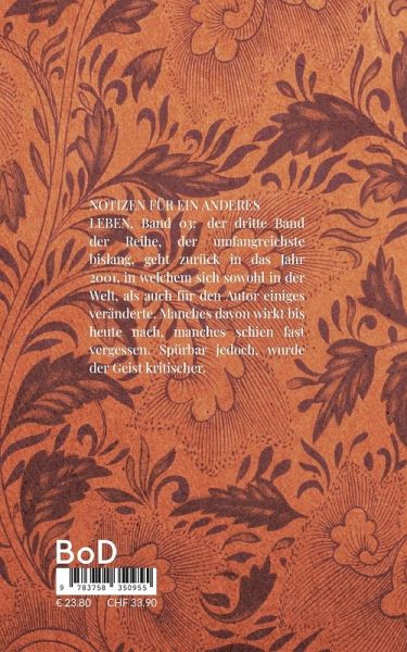 NOTIZEN FÜR EIN ANDERES LEBEN, Band 03: der dritte Band der Reihe, der umfangreichste bislang, geht zurück in das Jahr 2001, in welchem sich sowohl in der Welt, als auch für den Autor einiges veränderte. Manches davon wirkt bis heute nach, manches schien fast vergessen. Spürbar jedoch, wurde der Geist kritischer.