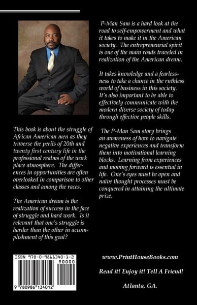True Event: In Miami, Don Diva Magazine Mogul P Man Sam is gunned down on interstate 95 in Dade County. This book is about the struggle of African American men as they traverse the perils of 20th and twenty first century life in the professional realms of the work place atmosphere. The differences in opportunities are often overlooked in comparison to other classes and among the races. The American dream is the realization of success in the face of struggle and hard work. Is it relevant that one's struggle is harder than the other in accomplishment of this goal? P-Man Sam is a hard look at the road to self-empowerment and what it takes to make it in the American society. The entrepreneurial spirit is one of the main roads traveled in realization of the American dream. It takes knowledge and a fearlessness to take a chance in the ruthless world of business in this society. It's also important to be able to effectively communicate with the modern diverse society of today through effective people skills. The P-Man Sam story brings an awareness of how to navigate negative experiences and transform them into motivational learning blocks. Learning from experiences and moving forward is essential in life. One's eyes must be open and naïve thought processes must be conquered in attaining the ultimate prize. The following are useful for application: • Mentorship • Net working • Coalition building • Broad-mindedness This book is a good source for inspiration and having hope is a major force in your journey through life. Situations and circumstances should not be viewed as a hindrance, but instead a hurdle in step to the finish line. There are many instances in this story that relay the struggle against forces that present obstacles. Willpower and dedication are true factors that assist the main character in winning out against such forces. In conclusion, the power of love and support are sustaining factors in the realization of goals in life. The act of goal-setting itself is an important factor in accomplishing anything in pursuant of ambitious dreams. This novel is sprinkled with kernels of knowledge and inspirational wording designed to give the reader insight into the motivations of the main character that can be transcending to experience. It is beneficial and intended to identify and acquire these gems of knowledge to retain as progressive career tools.