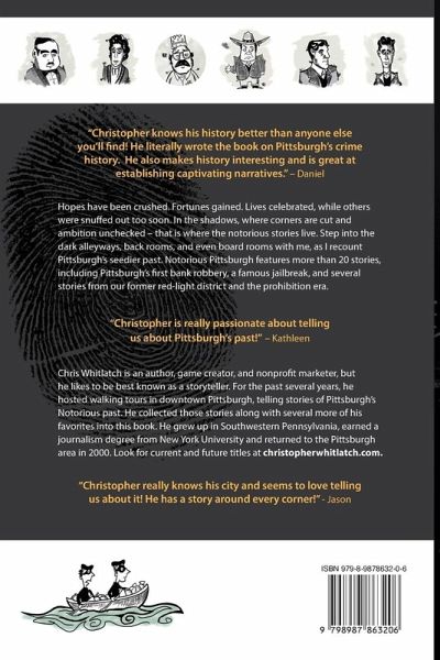 Hopes have been crushed. Fortunes gained. Lives celebrated while others were snuffed out too soon. In the shadows, where corners are cut, and ambition unchecked - that is where the notorious stories live. Step into the dark alleyways, back rooms and even board rooms with me, as I recount Pittsburgh's seedier past. Notorious Pittsburgh features more than 20 stories, including Pittsburgh's first bank robbery, a famous jailbreak, as well as several stories from our former red-light district and the prohibition era.