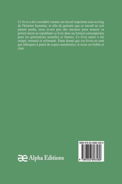 Notre-Dame-d'Amour, a été reconnu comme une ¿uvre majeure tout au long de l'histoire humaine, et nous avons pris des précautions pour assurer sa préservation en republiant ce livre de manière moderne pour les générations présentes et futures. Ce livre a été entièrement retapé, révisé et reformaté. Le texte est lisible et clair car ces livres ne sont pas créés à partir de copies numérisées.