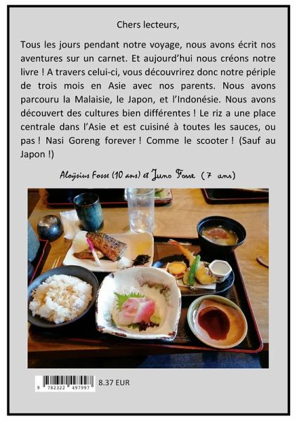 Juno et Aloÿsius, deux enfants de 7 et 10 ans en 2024 ont parcouru la Malaisie, le Japon et l'Indonésie. Tous les jours, pendant leur voyage, ils ont écrit leurs aventures sur un carnet. Et aujourd'hui, ils créent leur livre ! A travers celui-ci, vous découvrirez leur périple de 3 mois.