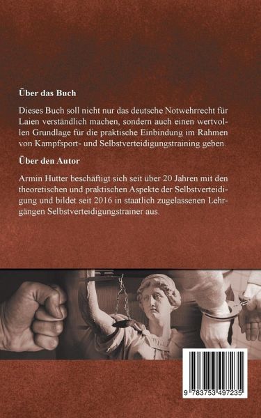 Dieses Buch soll nicht nur das deutsche Notwehrrecht für Laien verständlich machen, sondern auch einen wertvollen Grundlage für die praktische Einbindung im Rahmen von Kampfsport- und Selbstverteidigungstraining geben.