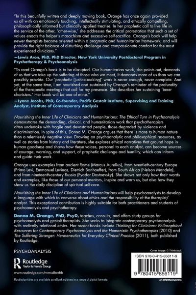 Winner of the Clinical catergory of the American Board & Academy of Psychoanalysis Book Prize for best books published in 2016 Nourishing the Inner Life of Clinicians and Humanitarians: The Ethical Turn in Psychoanalysis, demonstrates the demanding, clinical and humanitarian work that psychotherapists often undertake with fragile and devastated people, those degraded by violence and discrimination. In spite of this, Donna M. Orange argues that there is more to human nature than a relentlessly negative view. Drawing on psychoanalytic and philosophical resources, as well as stories from history and literature, she explores ethical narratives that ground hope in human goodness and shows how these voices, personal to each analyst, can become sources of courage, warning and support, of prophetic challenge and humility which can inform and guide their work. Over the course of a lifetime, the sources change, with new ones emerging into importance, others receding into the background.¿ Donna Orange uses examples from ancient Rome (Marcus Aurelius), from twentieth century Europe (Primo Levi, Emmanuel Levinas, Dietrich Bonhoeffer), from South Africa (Nelson Mandela), and from nineteenth century Russia (Fyodor Dostoevsky). She shows how not only can their words and examples, like those of our personal mentors, inspire and warn us; but they also show us the daily discipline of spiritual self-care, although these examples rely heavily on the discipline of spiritual reading, other practitioners will find inspiration in music, visual arts, or elsewhere and replenish the resources regularly. Nourishing the Inner Life of Clinicians and Humanitarians will help psychoanalysts to develop a language with which to converse about ethics and the responsibility of the therapist/analyst. This is an exceptional contribution highly suitable for practitioners and students of psychoanalysis and psychotherapy.