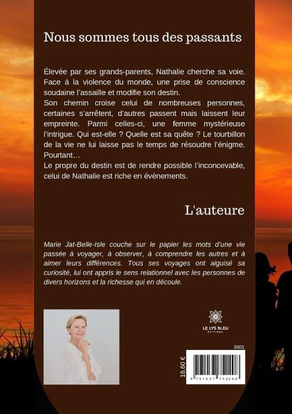 Élevée par ses grands-parents, Nathalie cherche sa voie. Face à la violence du monde, une prise de conscience soudaine l¿assaille et modifie son destin. Son chemin croise celui de nombreuses personnes, certaines s¿arrêtent, d¿autres passent mais laissent leur empreinte. Parmi celles-ci, une femme mystérieuse l¿intrigue. Qui est-elle ? Quelle est sa quête ? Le tourbillon de la vie ne lui laisse pas le temps de résoudre l¿énigme. Pourtant¿ Le propre du destin est de rendre possible l¿inconcevable, celui de Nathalie est riche en évènements.