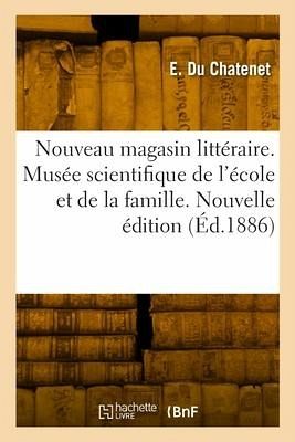Nouveau magasin littéraire: musée scientifique de l'école et de la famille (Nouvelle édition revue) / par E. du Chatenet Date de l'édition originale: 1886 Le présent ouvrage s'inscrit dans une politique de conservation patrimoniale des ouvrages de la littérature Française mise en place avec la BNF. HACHETTE LIVRE et la BNF proposent ainsi un catalogue de titres indisponibles, la BNF ayant numérisé ces oeuvres et HACHETTE LIVRE les imprimant à la demande. Certains de ces ouvrages reflètent des courants de pensée caractéristiques de leur époque, mais qui seraient aujourd'hui jugés condamnables. Ils n'en appartiennent pas moins à l'histoire des idées en France et sont susceptibles de présenter un intérêt scientifique ou historique. Le sens de notre démarche éditoriale consiste ainsi à permettre l'accès à ces oeuvres sans pour autant que nous en cautionnions en aucune façon le contenu. Pour plus d'informations, rendez-vous sur www.hachettebnf.fr