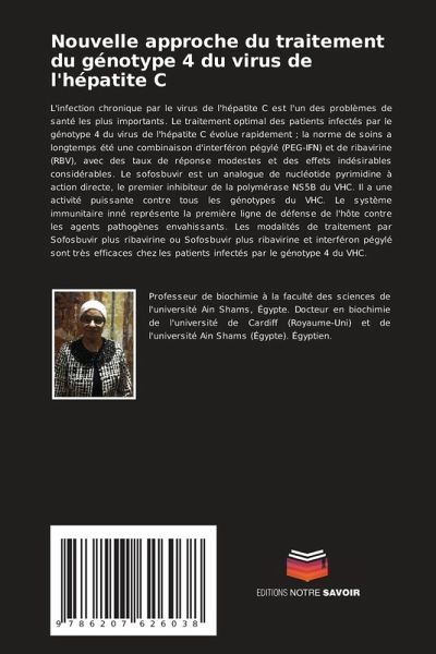 L'infection chronique par le virus de l'hépatite C est l'un des problèmes de santé les plus importants. Le traitement optimal des patients infectés par le génotype 4 du virus de l'hépatite C évolue rapidement ; la norme de soins a longtemps été une combinaison d'interféron pégylé (PEG-IFN) et de ribavirine (RBV), avec des taux de réponse modestes et des effets indésirables considérables. Le sofosbuvir est un analogue de nucléotide pyrimidine à action directe, le premier inhibiteur de la polymérase NS5B du VHC. Il a une activité puissante contre tous les génotypes du VHC. Le système immunitaire inné représente la première ligne de défense de l'hôte contre les agents pathogènes envahissants. Les modalités de traitement par Sofosbuvir plus ribavirine ou Sofosbuvir plus ribavirine et interféron pégylé sont très efficaces chez les patients infectés par le génotype 4 du VHC.