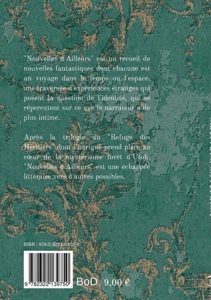"Nouvelles d'Ailleurs" est un recueil de nouvelles fantastiques proposant chacune un voyage dans le temps ou l'espace, une traversée d'expériences étranges qui reviennent à la question de l'identité, qui se répercutent sur ce que le narrateur a de plus intime.Après la trilogie du "Refuge des Héritiers" dont l'intrigue prend place au coeur de la mystérieuse forêt d'Utoh, "Nouvelles d'Ailleurs" est une échappée littéraire vers d'autres possibles.