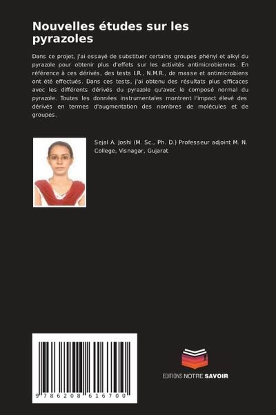 Dans ce projet, j'ai essayé de substituer certains groupes phényl et alkyl du pyrazole pour obtenir plus d'effets sur les activités antimicrobiennes. En référence à ces dérivés, des tests I.R., N.M.R., de masse et antimicrobiens ont été effectués. Dans ces tests, j'ai obtenu des résultats plus efficaces avec les différents dérivés du pyrazole qu'avec le composé normal du pyrazole. Toutes les données instrumentales montrent l'impact élevé des dérivés en termes d'augmentation des nombres de molécules et de groupes.