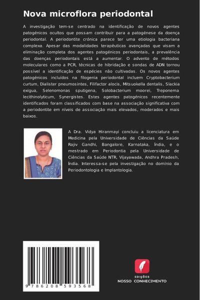 A investigação tem-se centrado na identificação de novos agentes patogénicos ocultos que possam contribuir para a patogénese da doença periodontal. A periodontite crónica parece ter uma etiologia bacteriana complexa. Apesar das modalidades terapêuticas avançadas que visam a eliminação completa dos agentes patogénicos periodontais, a prevalência das doenças periodontais está a aumentar. O advento de métodos moleculares como a PCR, técnicas de hibridação e sondas de ADN tornou possível a identificação de espécies não cultivadas. Os novos agentes patogénicos incluídos na filogenia periodontal incluem Cryptobacterium curtum, Dialister pneumosintes, Filifactor alocis, Mitsuokella dentalis, Slackia exigua, Selenomonas sputigena, Solobacterium moorei, Treponema lecithinolyticum, Synergistes. Estes agentes patogénicos recentemente identificados foram classificados com base na associação significativa com a periodontite em níveis de associação mais elevados, moderados e mais baixos.