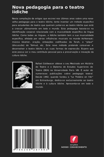 Nesta compilação de artigos que escrevi nos últimos anos sobre uma nova-velha pedagogia para o teatro iídiche, tento inventar um método específico para estudantes de teatro que queiram juntar-se ao teatro iídiche que está a crescer ultimamente em todo o mundo. Esta pedagogia baseia-se na identificação corporal relacionada com a musicalidade específica da língua iídiche. Como todas as línguas, o Iídiche também tem a sua musicalidade específica, afetada por várias influências musicais no mundo Ashkenazic: música klezmer, oração, entoações codificadas da Torah, o ¿pilpul¿ (discussão) do Talmud, etc. Este novo método pretende conservar e desenvolver o teatro iídiche e as suas formas de expressão. Espero que este possa ser o meu contributo pessoal para a preservação e inovação da cultura iídiche.