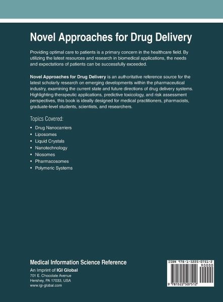 Providing optimal care to patients is a primary concern in the healthcare field. By utilizing the latest resources and research in biomedical applications, the needs and expectations of patients can be successfully exceeded. Novel Approaches for Drug Delivery is an authoritative reference source for the latest scholarly research on emerging developments within the pharmaceutical industry, examining the current state and future directions of drug delivery systems. Highlighting therapeutic applications, predictive toxicology, and risk assessment perspectives, this book is ideally designed for medical practitioners, pharmacists, graduate-level students, scientists, and researchers.