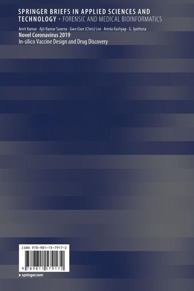 1. COVID19 and The Novel Corona Virus 2019.- 2. The Genomic and Evolutionary Studies of Novel Corona Virus 2019.- 3. Comparative proteomic analysis of NCoV and MERS Corona Virus.- 4. Physiochemical Characterization and Domain annotation of ORF1ab polyprotein of Novel Corona Virus 19.- 5. Docking studies of the RNA dependent RNA polymerase domain of ORF1AB protein with the selected ligands of Novel Coronavirus 19.- 6. Noted Herbs in the Treatment of COVID19 and Improving Human Immunity.- 7. Architecture of COVID-19 and SARS CoV-spike structural and functional aspects with ACE2 receptor: In-Silico analysis.- 8. Plasma Therapy towards COVID treatment.- 9. Identification and analysis of Possible Vaccine Candidates for COVID19.- 10. Development of KITS for Rapid Diagnosis of COVID19