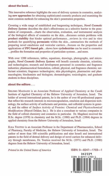 "Highlights the uses of delivery systems in cosmetics, analyzing new approaches for obtaining sophisticated cosmetic products and examining the most common methods for enhancing the skin's penetration properties. Covers a wide range of established and burgeoning techniques."