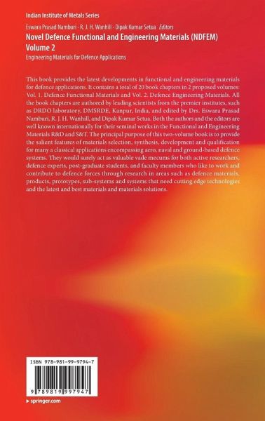This book provides the latest developments in functional and engineering materials for defence applications. It contains a total of 20 book chapters in 2 proposed volumes: Vol. 1. Defence Functional Materials and Vol. 2. Defence Engineering Materials. All the book chapters are authored by leading scientists from the premier institutes, such as DRDO laboratory, DMSRDE, Kanpur, India, and edited by Drs. N Eswara Prasad, RJH Wanhill, and DK Setua. Both the authors and the editors are well known internationally for their seminal works in the Functional and Engineering Materials R&D and S&T. The principal purpose of this two-volume book is to provide the salient features of materials selection, synthesis, development and qualification for many a classical applications encompassing aero, naval and ground-based defence systems. They would surely act as valuable vade mecums for both active researchers, defence experts, post-graduate students, and faculty members who like to work and contribute to defence forces through research in areas such as defence materials, products, prototypes, sub-systems and systems that need cutting edge technologies and the latest and best materials and materials solutions.