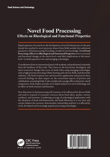 Rapid expansion of research on the development of novel food processes in the past decade has resulted in novel processes drawn from fields outside the traditional parameters of food processing. Providing a wealth of new knowledge, Novel Food Processing: Effects on Rheological and Functional Properties covers structural and functional changes at the micro level, and their implications at the macro level, in food exposed to new and emerging technologies. Contributions from an international panel with academic and professional credentials form the backbone of this work. They focus on the functional, rheological, and micro-structural changes that occur in foods when using emerging technologies such as high pressure processing, Ohmic heating, pulse electric fields, and ultraviolet radiation. The book examines new and innovative applications and presents the impact of these research findings on the nutritional aspects of protein and carbohydrate containing foods. It also considers the synergic effects of protein-starch components. Each chapter provides an in-depth analysis of a novel technology and its effect on food structure and function. New directions in food processing will continue to be influenced by diverse fields and used to respond to consumer concerns about food safety, quality, sensory attributes, and nutrition. Combining coverage of technological applications with the chemistry of food and biomaterials, this book illustrates in a very clear and concise fashion the structure-functionality relationship and how it is affected by newly developed and increasingly popular processing technologies.