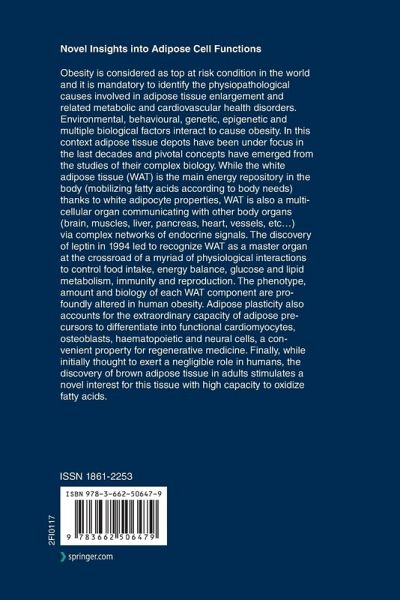 Pathological Alteration of Human Adipose Tissue in Obesity.- Dynamics of Human Adipose Tissue. Regulatory Mechanisms and Consequences for Fat Cells and the Whole Body.- Metabolism of Fatty Acids in Adipocytes.- The Role of Hypoxia in Adipocyte Function and Dysfunction.- Brown Adipose Tissue In Humans: A New Target for Anti-Obesity Therapy.- Adipose Tissue Dysfunction: A Multistep Process.- Fat Cell Progenitors: Origins and Plasticity.- Transcriptional Regulation of Brown and White Adipogenesis.- Transcriptional Control of Gene Expression in Different Adipose Tissue Depots.- Epigenetic Approaches to Adipose Biology.- Metabolic and Angiogenic Consequences of the Presence or Absence of UCP1.- Metabolic Responses to Weight Perturbation.- Understanding Causal Relationships in the Metabolic Syndrome: Recent Insights from Extreme Human Phenotypes.
