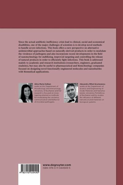 Microbial infections still represent one of the major causes of mortality and morbidity worldwide. Irrational usage of antimicrobials has lead to increased resistance, causing clinical, social and economical disabilities. Therefore, one of the major challenges of scientists is to develop novel alternative methods to handle infections and reduce resistance and other side effects produced by the actual therapies. The aim of this book is to offer a perspective on novel approaches to handle infections by using naturally-derived products in order to modulate the virulence of pathogens, without the risk of developing resistance. We intend to highlight the utility of microbial, vegetal and animal-derived compounds with potential antimicrobial activity by exploiting their effect on microbial virulence. Furthermore, this book aims to reveal the potential to assimilate recent bio-technological findings, like the usage of nanotechnology as efficient shuttles for stabilizing, improved targeting and the controlled release of natural products in order to efficiently fight infections.