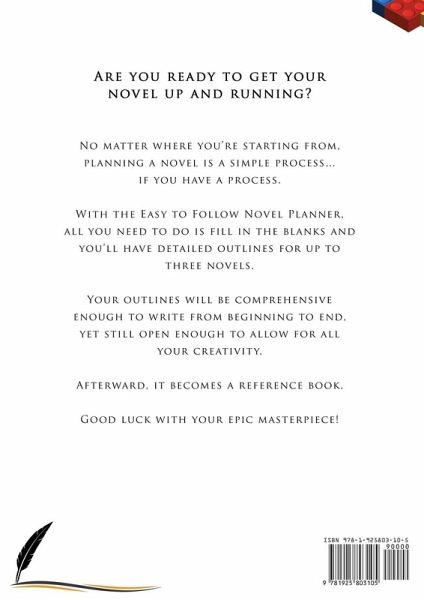 Are you ready to get your novel up and running? No matter where you're starting from, planning a novel is a simple process... if you have a process. With the Easy to Follow Novel Planner, all you need to do is fill in the blanks and you'll have detailed outlines for up to three novels. Your outlines will be comprehensive enough to write from beginning to end, yet still flexible enough to allow all your creativity. Afterward, it becomes a reference book. Good luck!