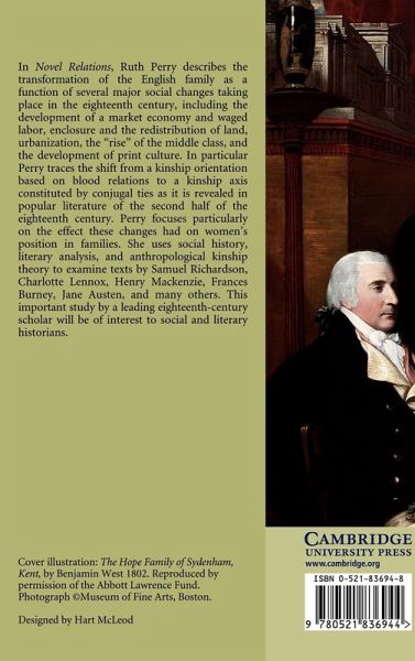 Ruth Perry describes the transformation of the English family as a function of several major social changes taking place in the eighteenth century including the development of a market economy and waged labor, enclosure and the redistribution of land, urbanization, the 'rise' of the middle class, and the development of print culture. In particular, Perry traces the shift from a kinship orientation based on blood relations to a kinship axis constituted by conjugal ties as it is revealed in popular literature of the second half of the eighteenth century. Perry focuses particularly on the effect these changes had on women's position in families. She uses social history, literary analysis and anthropological kinship theory to examine texts by Samuel Richardson, Charlotte Lennox, Henry MacKenzie, Frances Burney, Jane Austen, and many others. This important study by a leading eighteenth-century scholar will be of interest to social and literary historians.