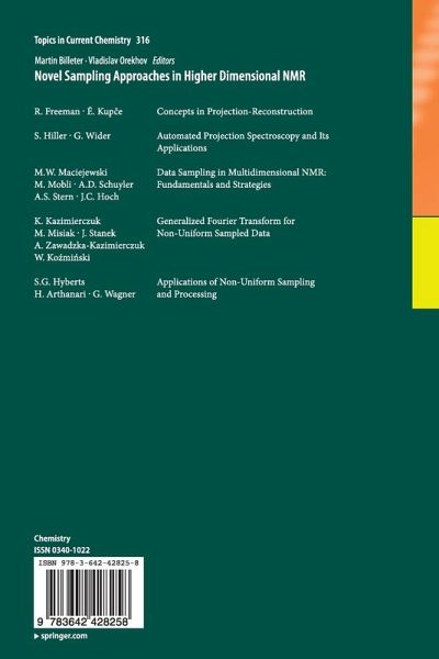 Concepts in Projection-Reconstruction , by Ray Freeman and riks Kupce.- Automated Projection Spectroscopy and Its Applications , by Sebastian Hiller and Gerhard Wider.- Data Sampling in Multidimensional NMR: Fundamentals and Strategies , by Mark W. Maciejewski, Mehdi Mobli, Adam D. Schuyler, Alan S. Stern and Jeffrey C. Hoch.- Generalized Fourier Transform for Non-Uniform Sampled Data , by Krzysztof Kazimierczuk, Maria Misiak, Jan Stanek, Anna Zawadzka-Kazimierczuk and Wiktor Kozminski.- Applications of Non-Uniform Sampling and Processing , by Sven G. Hyberts, Haribabu Arthanari and Gerhard Wagner.