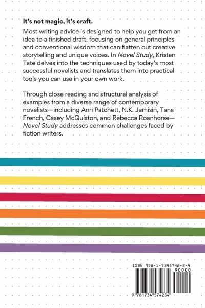 It's not magic, it's craft Most writing advice is designed to help you get from an idea to a finished draft, focusing on general principles and conventional wisdom that can flatten out creative storytelling and unique voices. In Novel Study, Kristen Tate delves into the techniques used by today's most successful novelists and translates them into practical tools you can use in your own work. Through close reading and structural analysis of examples from a diverse range of contemporary novelists-including Ann Patchett, N.K. Jemisin, Tana French, Casey McQuiston, and Rebecca Roanhorse-Novel Study addresses common challenges faced by fiction writers: How to write a captivating opening chapter How to maximize plot suspense How to effectively manage multiple point-of-view characters How to create immersive settings and authentic dialogue How to craft sentences that resonate Each chapter begins with a key question and ends with concrete takeaways you can immediately apply to your writing. Novel Study includes nine full-color charts and graphs that illustrate many of the techniques discussed. You'll be able to see at a glance how successful novelists structure their narratives, manage chronology, and balance different elements of their storytelling. Beyond insights and techniques, Novel Study offers tips and templates to help you build your own Novel Study files, tailored to the works and authors you admire. There isn't a single way to tell a successful story. There is no secret formula or magic template that will make it easy to write a novel. But the right tools can unlock your creativity and lead to a manuscript that surprises you and delights your readers.