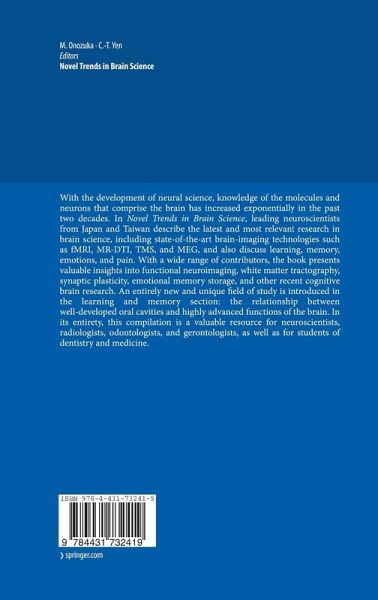 An enormous number of neurons in the brain form neural circuits by creating s- aptic bonds with other neurons. Many of those circuits come together and function as a system. To clarify the function of the human brain, a study needs to be dev- oped as a whole, not merely at the molecular, cellular, or systemic level. With the development of neural science, knowledge of the molecules and neurons that comprise the brain has increased exponentially in the last two decades. The mysteries of human brain function are being solved in sequence with the use of the latest medical technologies such as PET, fMRI, MEG, and TEM, and in this way, research in neural science is making rapid progress. Springer Japan has given me the opportunity to publish this book, Novel Trends in Brain Science, which introduces the most important and latest knowledge in neural science on brain function imaging, learning, memory, emotions, and pain. In particular, the relationship between well-developed oral cavities and highly advanced brain function is an extremely new and unique area of study and is expected to become an entirely new ? eld. As of 2006, two Japanese-Taiwanese joint conferences on neural science have been held, in Gifu Prefecture (Japan) last year and in Taipei this year. In this book I have collected original research introduced by neuroscientists representing both countries at those conferences, and I am con? dent that the work brought together here will promote further research on the human brain.