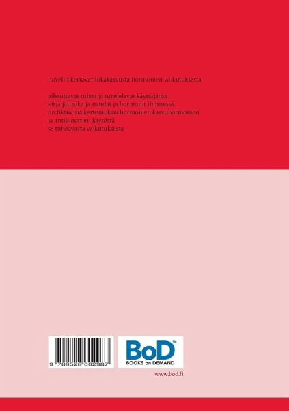 Novellit kertovat liikakasvusta ja pahasta olosta jota seuraa loppu. Aiheuttavat tuhoa ja turmelevat käyttäjänsä. Kirja jättisika ja naudat ja hormonit ihmisessä. On fiktiivisiä faktaa kertomuksia hormonien kasvuhormonien ja antibioottien käytöstä ja sen tuhoavasta vaikutuksesta. Hormoonit ihmisessä: Mies syö hormooneja eriäviä määriä ja ne aiheuttavat liiallisena hänen kuolemansa.