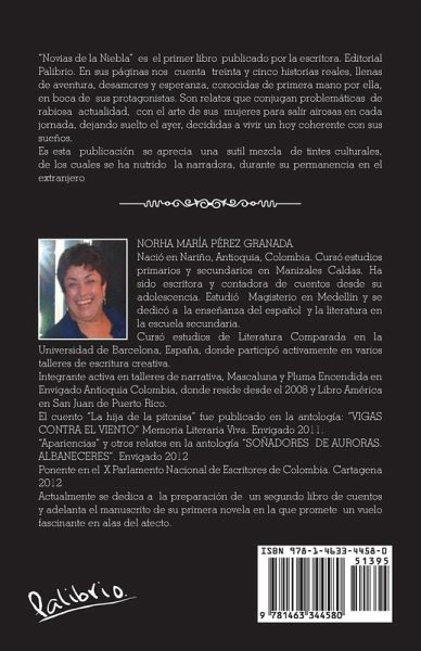 "Novias de la Niebla" es el primer libro publicado por la escritora. Editorial Palibrio. En sus páginas nos cuenta treinta y cinco historias reales, llenas de aventura, desamores y esperanza, conocidas de primera mano por ella, en boca de sus protagonistas. Son relatos que conjugan problemáticas de rabiosa actualidad, con el arte de sus mujeres para salir airosas en cada jornada, dejando suelto el ayer, decididas a vivir un hoy coherente con sus sueños. Es esta publicación se aprecia una sutil mezcla de tintes culturales, de los cuales se ha nutrido la narradora, durante su permanencia en el extranjero.