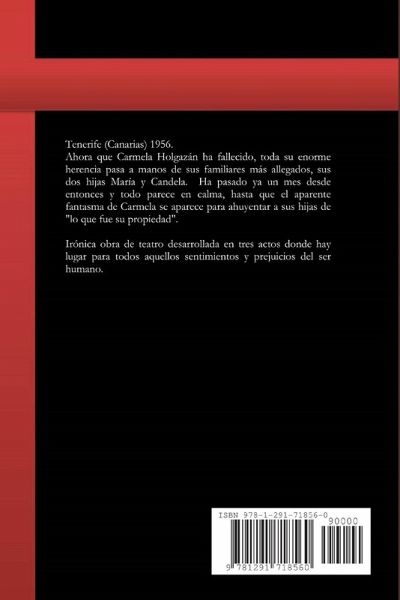 Tenerife (Canarias) 1956. Ahora que Carmela Holgazán ha fallecido, toda su enorme herencia pasa a manos de sus familiares más allegados, sus dos hijas María y Candela. Ha pasado ya un mes desde entonces y todo parece estar en calma hasta que el aparente fantasma de Carmela se aparece para ahuyentar a sus hijas "de lo que fue su propiedad". Irónica obra de teatro desarrollada en tres actos donde hay lugar para todos aquellos sentimientos y prejuicios del ser humano.