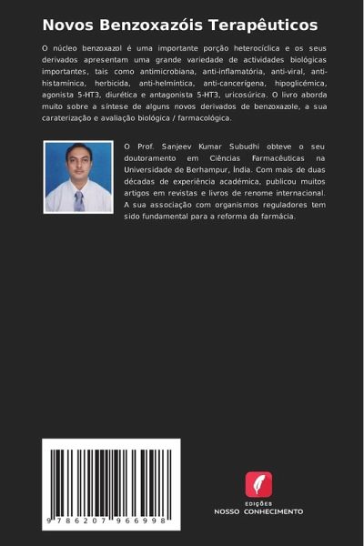 O núcleo benzoxazol é uma importante porção heterocíclica e os seus derivados apresentam uma grande variedade de actividades biológicas importantes, tais como antimicrobiana, anti-inflamatória, anti-viral, anti-histamínica, herbicida, anti-helmíntica, anti-cancerígena, hipoglicémica, agonista 5-HT3, diurética e antagonista 5-HT3, uricosúrica. O livro aborda muito sobre a síntese de alguns novos derivados de benzoxazole, a sua caraterização e avaliação biológica / farmacológica.