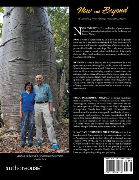 VINOD D DESHMUKH MD, Ph.D. is a retired neurologist from Jacksonville, Florida. He was an Associate Professor of Neurology at University of Florida from 1984-1996. He had his private practice of Neurology at the Flagler Hospital in St Augustine, Florida from 1996-2007. He has published several scientific articles, monographs and books of poetry, photography and paintings. His recent books include 1) The Astonishing Brain and Holistic Consciousness, 2) Presence: The Key to Mental Excellence, 3) The Last Leaf, 4) A Poet's Walk, 5) A Poet's Vision, and 6) Natural Bliss. He received The Albert Nelson Marquis Lifetime Achievement Award in 2018. SUNANDA V DESHMUKH, MD, FFARCS is an American board-certified Anesthesiologist. She was an Assistant Professor of Anesthesiology at the Baylor College of Medicine, Houston, Texas in 1976-1978. She was awarded the international H G Wolff award for her research on the platelet dysfunction in Migraine headaches. She had her private practice of Anesthesiology in Jacksonville, Florida from 1978-2011. She loves portrait painting, sailing and gardening.