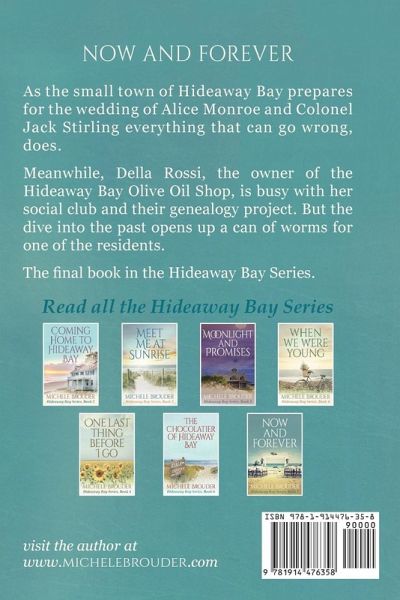 As the small town of Hideaway Bay prepares for the wedding of Alice Monroe and Colonel Jack Stirling everything that can go wrong, does. Meanwhile, Della Rossi, the owner of the Hideaway Bay Olive Oil Shop, is busy with her social club and their genealogy project. But the dive into the past opens up a can of worms for one of the residents.