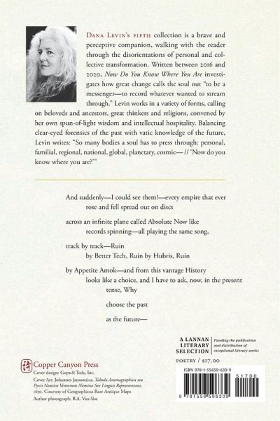 New York Times "100 Notable Books of 2022" NPR "Best Books of 2022" “Levin’s luminous latest reckons with the disorientation of contemporary America. . . . Through the fog of doubt, Levin summons ferocious intellect and musters hard-won clairvoyance.”—Publishers Weekly, starred review Dana Levin’s fifth collection is a brave and perceptive companion, walking with the reader through the disorientations of personal and collective transformation. Now Do You Know Where You Are investigates how great change calls the soul out of the old lyric, “to be a messenger―to record whatever wanted to stream through.” Levin works in a variety of forms, calling on beloveds and ancestors, great thinkers and religions―convened by Levin’s own spun-of-light wisdom and intellectual hospitality―balancing clear-eyed forensics of the past with vatic knowledge of the future. “So many bodies a soul has to press through: personal, familial, regional, national, global, planetary, cosmic― // ‘Now do you know where you are?’”
